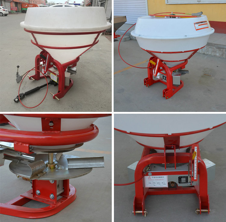 Strømindgang: Tilsluttet gearkassen af gødningspredningsmaskinen gennem den bageste udgangsoverførselsaksel på traktoren, det driver kædehjulgruppen for at gøre formidlingen og gødningens spredningsskive roterende synkront.
