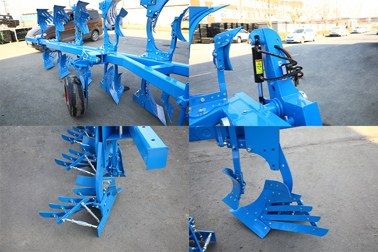 DeVendbar flip plover sammensat af seks kernemoduler: ophængsrammen, reverserende cylinder, kontrolventilmekanismen, jordhjulsmekanismen, plovrammen og plovkroppen. Plove -rammen drives til lodret at vende frem og bagud ved udvidelsen og tilbagetrækningen af cylinderens stempelstang. Ground Wheel -mekanismen vedtager skruejusteringsteknologi for at integrere kontrollen med pløjedybde og transportfunktioner.