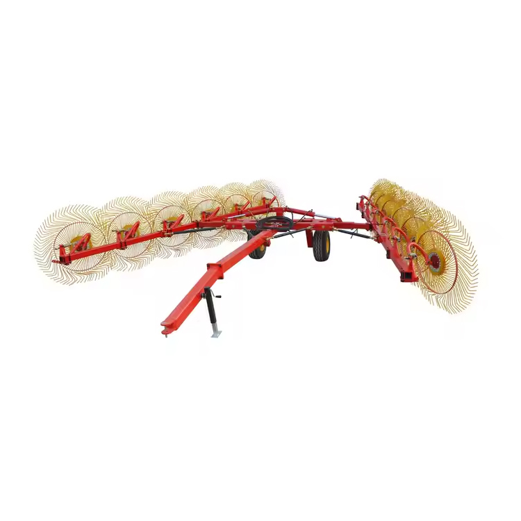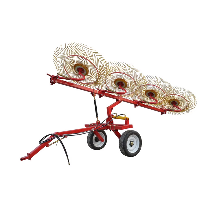 Rotary Wheel Grass RakesHar flere hjul, der roterer, når de trækkes hen over marken og effektivt kan samle og placere skære hø eller andre afgrøder. Det kan også håndtere afgrøder mere delikat og skabe mere jævn landbrugsjord. De er også mere fleksible end storhjulede harver, hvilket giver mulighed for at dreje ved markeringens smalle kanter. Wheeled Harrows er også enkle i design for at give bedre ydelse og forbedre afgrødekvaliteten og hjælpe også med at løfte og dreje afgrøder til tørre hurtigere.
